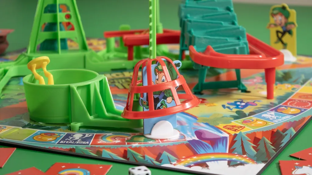Uhvati maskotu Lucky Charms u novom izdanju igre Mišolovka! Ploča i karte prikazuju Luckyja i poznate marshmallowe iz žitarica.