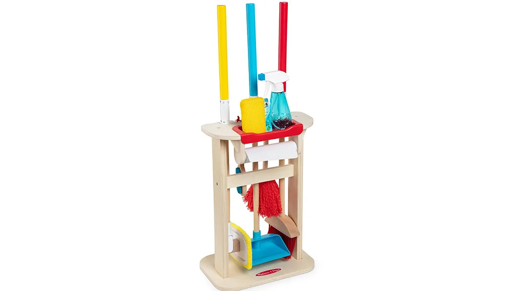 Djeca mogu pomoći u kućanskim poslovima s prilagođenim alatima i dodacima za čišćenje. Set od 11 dijelova uključuje sve potrebne sredstva za čišćenje, kao što su metla s drvenom drškom, mop s zamjenjivom krpicom za čišćenje, prašnik i još mnogo toga.