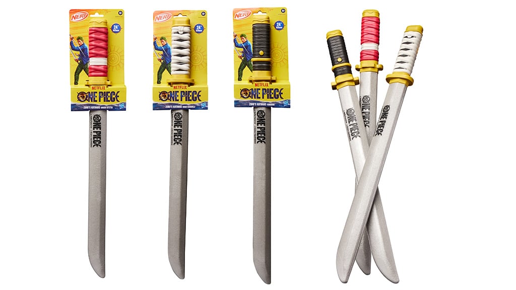 Djeca mogu sudjelovati u uzbudljivim bitkama s trodijelnim setom katana od pjene, koji su inspirirani legendarnim mačevima Roronoa Zoro, Sandai Kitetsu, Wado Ichimonji i Yubashiri. Svaki mač je dug oko 60 cm, ima jezgru od pjene, oštricu i dršku, kako bi igra bila sigurna i bezbrižna. Djeca se mogu pretvarati da su zamjenik kapetana Monkey D. Luffy, dok ih roditelji mogu nadgledati, čak i dok zajedno gledaju popularnu igranu seriju ili anime. Ovaj set je savršen izbor za svaku obitelj koja je obožavatelj One Piece i želi doživjeti avanture i u vlastitom domu.
