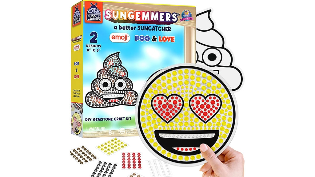 Djeca mogu vlastoručno izraditi svoje sjajne hvatače sunca s više od 1.000 naljepnica dragulja. Set sadrži dvije Emoji SunGemmers figure (Kaka i Ljubav), naljepnice, obostranu ljepljivu traku i upute. Ovi kreativni setovi bez nereda savršeni su za kišne dane, dok razvijaju finu motoriku. Djeca ne samo da se zabavljaju stvarajući, već im raste i samopouzdanje dok izrađuju vlastite, jedinstvene ukrase za prozor ili svoju sobu.
