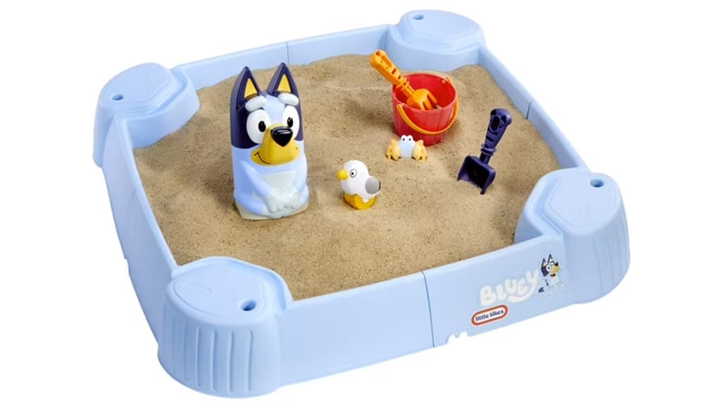 Ovo pješčaniko donosi plažu u vrt djece! Bluey Beach Day Pješčanik može primiti do 45 kilograma pijeska i dolazi s izdržljivim plastičnim poklopcem koji štiti pijesak između vremena za igru. Set sadrži brojne dodatke inspirirane epizodom Bluey, Plaža!, kao što su grablje, lopatica, valjak s otiscima galebovih nogu, kalup za dvorac od pijeska Bluey i kalup za krokodila — samo pazi na čudne pelikane!Provedi dan s Blueyjem prskajući se uz pomoć Bluey Beach Water Table. Ovaj 2-u-1 senzorički stol ima uzbudljive vodene funkcije, kao što su nagibna kanta, rotirajući zupčanici i dva bazena s kaskadama. Djeca mogu plutati sporom rijekom s plutajućim likovima Blueyja ili koristiti alate za pijesak kako bi pustili mašti na volju! Unutarnja šupljina trokutastog oblika također je pogodna za pohranu vode i pijeska ili čak za pohranu igračaka do sljedećeg puta.