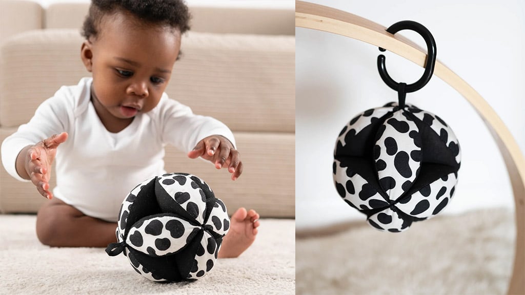 U kolekciji se nalazi i jedna osjetilna lopta s dalmatinskim uzorkom (35 dolara). Ova mekana i fleksibilna lopta raste zajedno s bebama, nudeći novo iskustvo igre u svakoj fazi razvoja. Može se objesiti na autosjedalicu ili na podlogu za igru, tako da je uvijek pri ruci. Veće bebe mogu razvijati svoju motoričku koordinaciju hvatajući, bacajući ili tresući loptu segmentiranog oblika, koju je lako uhvatiti. Obitelji mogu uživati u igri i za sunčanog vremena na vodootpornoj podlozi za igru, koja omogućuje djeci da udobno i sa stilom otkrivaju vizualna čuda proljeća. Ova kolekcija ne samo da podržava razvoj beba, već stvara i zajedničke, radosne trenutke za cijelu obitelj.Bebine oči još nisu potpuno razvijene kada se rode, zato je Etta Loves surađivala s ortoptistom i Sussex Baby Labom kako bi razumjeli što bebe vole gledati. Njihova istraživanja su pokazala da takvi monokromatski uzorci pomažu ranom prepoznavanju i potiču stvaranje veza u bebinom mozgu. Ovi osjetilni uzorci dodatno privlače bebinu pažnju, pomažu umiriti nemirnu djecu i stvaraju trenutak mira za obitelj. Redovita upotreba takvih uzoraka može pridonijeti osjetilnom razvoju beba i pomoći roditeljima da lakše stvore harmoničnu atmosferu u svom domu.