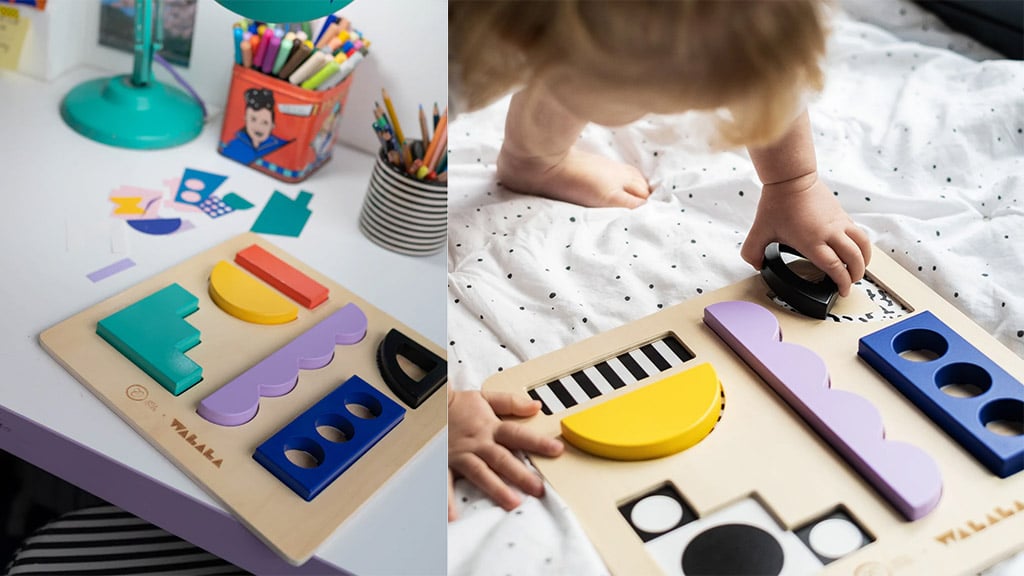 Drvena slagalica (32 dolara) sadrži šest šarenih oblika ispod kojih se kriju očaravajući crno-bijeli uzorci. Ovi hrabri uzorci nisu samo prekrasni, već se temelje i na znanstvenim osnovama kako bi pomogli razvoju vida beba! Mališani mogu vježbati koordinaciju ruka-oko tako što postavljaju, slažu ili balansiraju dijelove slagalice, dok uzorci jačaju njihov vid i percepciju. Impresivna umjetnost Walala Studios čini ovu igračku zaista posebnom, pa je roditelji neće htjeti spremiti ni nakon završetka igre. Ova slagalica nije samo zabavna, već i razvojna, pa je savršen izbor za svako malo dijete.Ova zagonetka pomaže jačati vid beba! Redovita upotreba igračke razvija vizualnu percepciju, podržava koordinaciju ruka-oko i potiče kognitivni razvoj. Posebno je korisna u ranom djetinjstvu, kada se vid beba još razvija, jer kontrastni uzorci i boje privlače njihovu pažnju i potiču pokrete očiju. Na taj način djeca lakše uče fokusirati se i brže se prilagođavaju svojoj okolini.