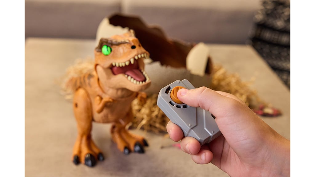 Obitelji mogu unijeti uzbudljivu zabavu u igraonicu uz pomoć najnovije igračke T. rex, koju je inspirirala filmska serija Jurassic World. Izlijeganje jaja počinje kada djeca od 5 godina ili starija kucnu po jajetu. Djeca mogu pratiti kako se ljuska puca i kako se iz ljepljive ovojnice pojavljuje beba T. rex. Ova igračka ne samo da zabavlja, već razvija i maštu te finu motoriku, dok djeca doživljavaju čaroliju svijeta dinosaura.Prapovijesna igra počinje kada se dinosaurus izlegne iz jajeta. Djeca mogu ponovno stvoriti svoje omiljene trenutke iz Jurassic Worlda dok se igraju, treniraju i stupaju u interakciju s T. rexom. Svaka interakcija oblikuje osobnost dinosaura, tako da djeca mogu vidjeti kako se T. rex razvija u divljeg grabežljivca ili prijateljskog suputnika. Ova igra ne samo da razvija kreativnost i maštu, već pomaže i u razvoju socijalnih vještina i empatije, dok djeca smišljaju i proživljavaju vlastite priče sa svojim dinosaurom.