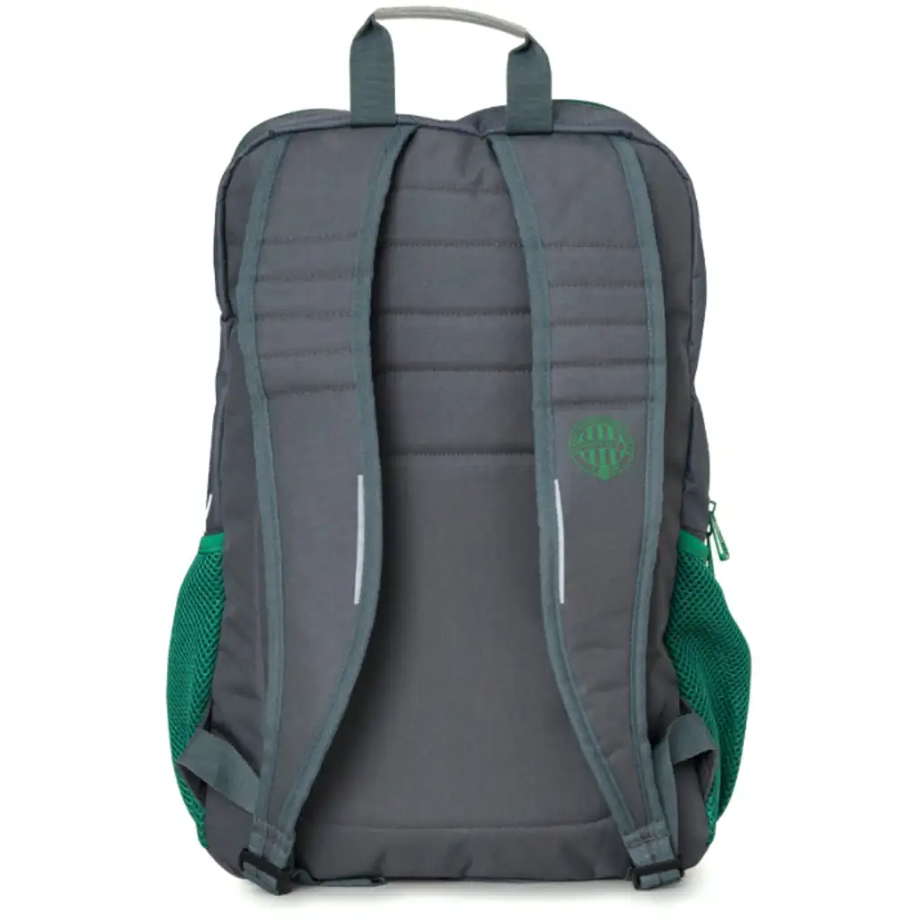 Velika siva školska torba s Fradi grbom pravi je univerzalni komad za učenike viših razreda ili srednjoškolce koji vole praktično i stilski nositi svoju opremu. Čista siva osnovna boja s zelenim Fradi detaljima i grbom daje torbi zaista sportski izgled. Njene dimenzije (50 x 40 x 19 cm) su više nego dovoljne za nošenje udžbenika, bilježnica, sportske opreme ili čak laptopa. Podstavljeni stražnji i rameni dio osiguravaju udobnost, dok su bočni mrežasti džepovi savršeni za pohranu boce ili drugih sitnica. Savršen izbor za svakog strastvenog Fradi navijača za školu!