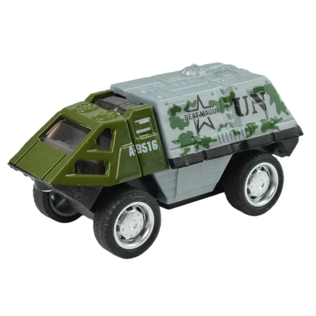 Ova vojna vozila su izvrsne kvalitete i zahvaljujući pažljivim detaljima izgledaju vrlo realistično. Zahvaljujući maloj veličini, otprilike 1/55 mjerila (oko 7,5 cm), lako se mogu držati u ruci, tako da vaše dijete može lako upravljati njima i uživati u igri. Odaberite svoje omiljeno vojno vozilo ili dopustite svom djetetu da odluči i donesite svijet vojnih akcija u njegovu igraonicu!