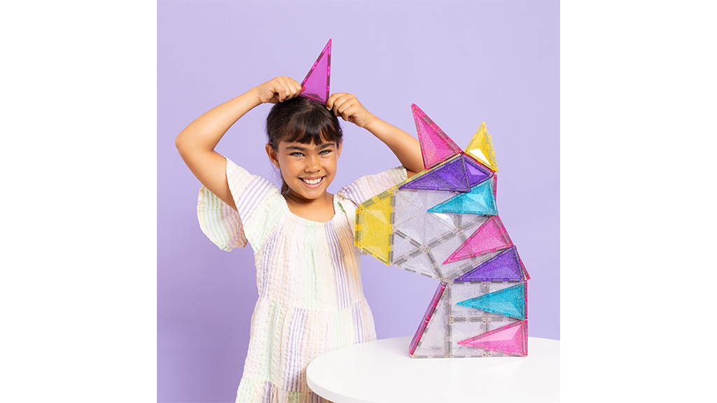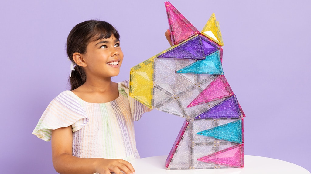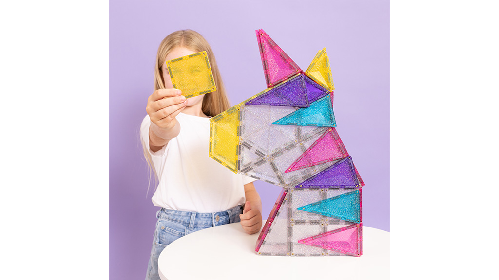 56-dijelni Sjajni Jednorog Paket spreman je donijeti maštovite avanture među dječje igračke. Djeca mogu otkriti nove mogućnosti gradnje dok stvaraju sjajnog jednoroga od prozirnih i živopisnih, šarenih sjajnih pločica. Graditelji mogu koristiti različite oblike – poput šesterokuta, pravokutnika, trokuta i trapeza – kako bi stvorili svog novog, čarobnog konjića. Ovaj set ne samo da razvija kreativnost i finu motoriku, već pruža i sate zabave dok djeca smišljaju i ostvaruju vlastite, jedinstvene priče. Sjajni elementi čine gotove kreacije još posebnijima, tako da svako dijete s ponosom može pokazati svog šarenog jednoroga.Ovi paketi s temom šljokica nisu namijenjeni samo za dvorce i jednoroge. Svaki paket otvara vrata kreativnosti i potiče STEAM učenje sa svakom magnetskom vezom. Osim toga, kreativna djeca mogu kombinirati šljokičaste elemente s drugim Connetix paketima i setovima, čime se otvara još više mogućnosti za stvaranje i učenje.