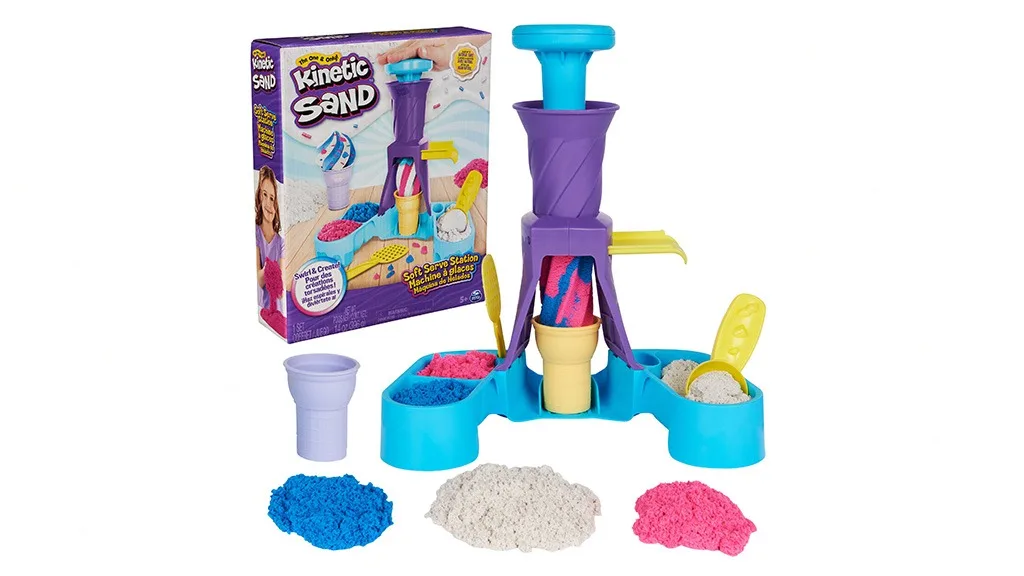 Igranje s pijeskom nikada nije bilo ovako slatko. S igračkom setom Spin Master Kinetic Sand Soft Serve Station djeca mogu pustiti na slobodu svog unutarnjeg prodavača sladoleda i posluživati pješčane poslastice bez potrebe za posjetom plaži.Set igračaka dizajniran za djecu od 5 godina i stariju prepun je mogućnosti za stvaranje sladoleda po vlastitom ukusu iznova i iznova.