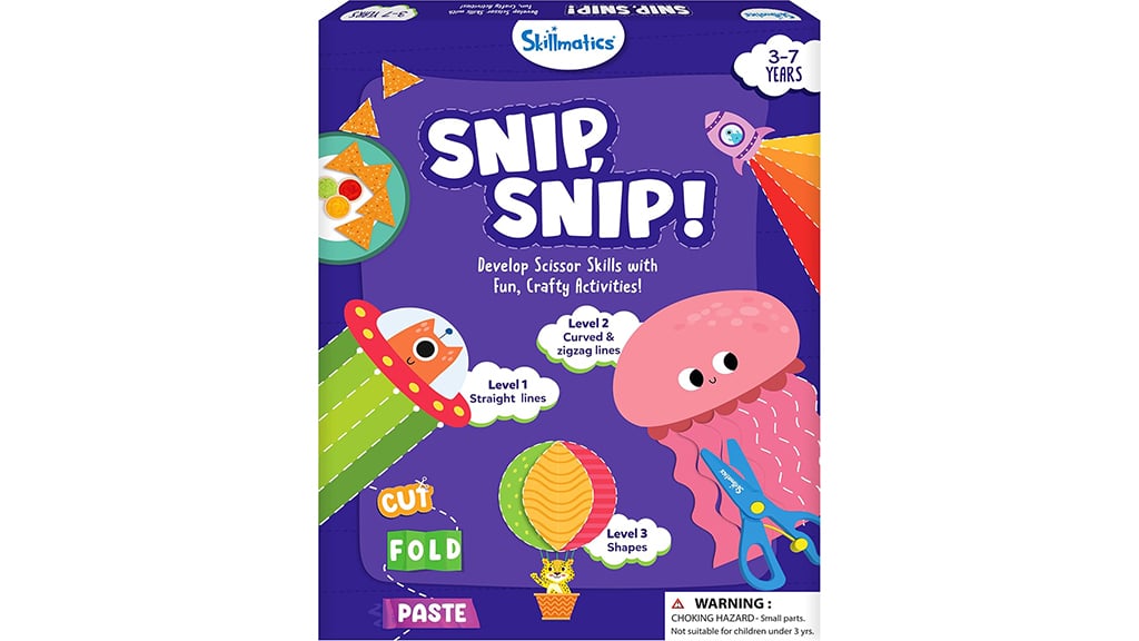 Ovaj set je dizajniran s tri različite razine težine, koji korak po korak vodi djecu: od rezanja ravnih linija, preko zakrivljenih i cik-cak uzoraka, sve do sigurnog izrezivanja različitih oblika. Paket sadrži radnu bilježnicu s 25 vježbi rezanja, dvije škare prilagođene djeci i jedan ljepilo u stiku. Dostupan je u više tematskih varijanti, tako da svako dijete može pronaći ono što mu je najzanimljivije. Ovaj set ne razvija samo finu motoriku, već i kreativnost i samopouzdanje, dok se djeca kroz igru uče.