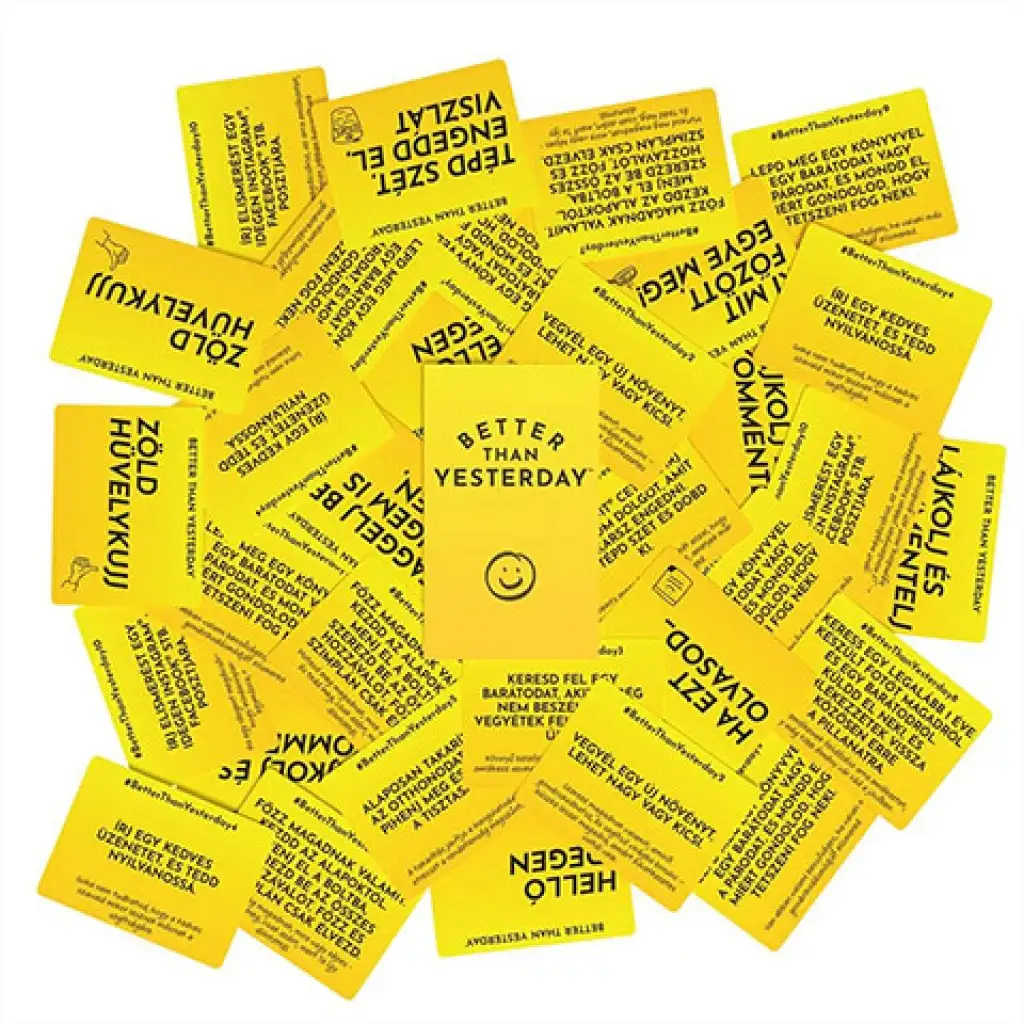 Better Than Yesterday je motivacijska igra koja sadrži 365 zadataka na karticama, a ako ih izvršiš, postat ćeš puno samopouzdaniji, ispunjeniji i bezbrižniji. Možeš to shvatiti kao da svaki dan u godini možeš izvršiti jedan zadatak. U njoj ćeš pronaći lakše izazove, ali i one koji mogu biti teži za izvršenje. Tijekom ove igre s kartama shvatit ćeš tko si, što očekuješ od života i tvoja očekivanja će rasti iz dana u dan. Izvrši svaki dan po jedan zadatak i ispuni ih sve.