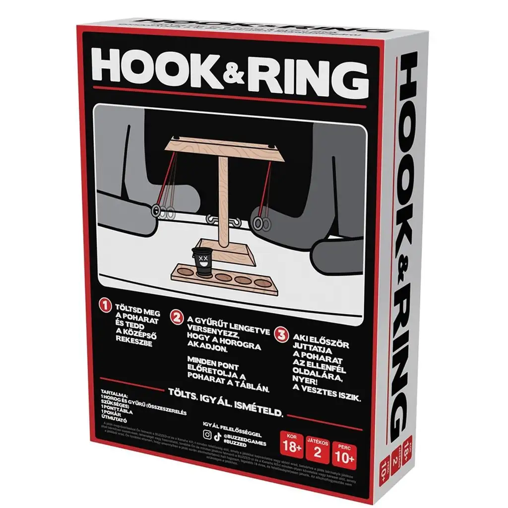 WDYM Hook & Ring društvena igra zajamčeno će začiniti svako okupljanje s prijateljima, zabave ili čak dosadnu večer! Ova jednostavna, ali izuzetno zabavna igra namijenjena je za dvoje igrača, a u svakoj rundi naglasak je na spretnosti, brzini i refleksima – i naravno, na dobroj atmosferi! Cilj je zaljuljati prsten tako da zapne za udicu, i to brže od protivnika. Svaki uspješan pogodak vodi te korak bliže pobjedi i jedan čašicu pomiče prema naprijed na ploči... sve dok netko ne izgubi – i popije.