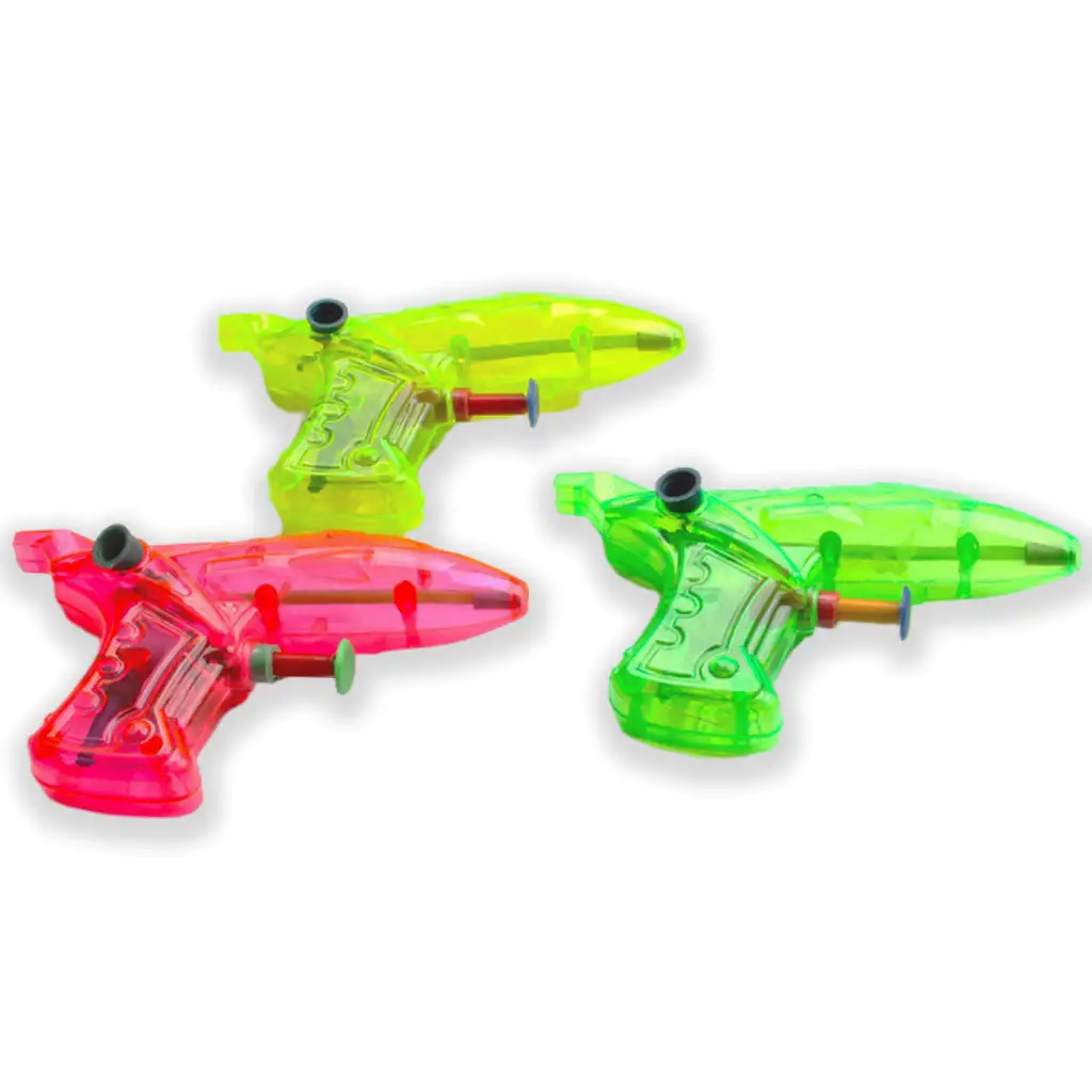 Mali vodeni pištolj dostupan je u tri vibrirajuće boje: roza, zelena i žuta. Ovi kompaktni pištolji idealni su za ljetne igre i vodene bitke. Lako se rukuje s njima i mogu se ponovno napuniti, pružajući dugotrajnu zabavu sudionicima vodenih bitaka.