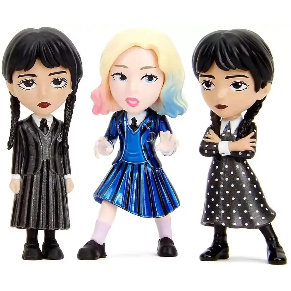 Među kolekcionarskim minifigurama nalaze se Wednesday u različitim odjevnim kombinacijama, kao i njezini prijatelji, poput Enid. Paket može sadržavati i jedinstvene male predmete - poput pisaće mašine, gavrana, svijećnjaka, knjige ili poznate ruke "Thing". Ovi detaljno izrađeni dodaci dodatno povećavaju doživljaj igre i omogućuju kreativnu igru uloga.
