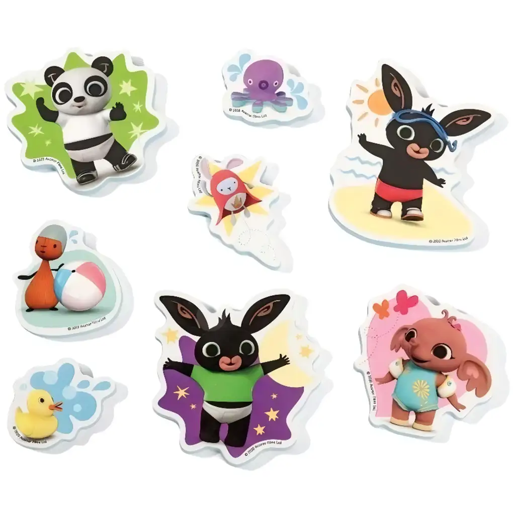 Bing zeko igračka za kupanje je zabavan i zanimljiv dodatak za vrijeme kupanja najmlađih. Ovaj šareni i šarmantni set sadrži 8 spužvastih oblika, na kojima su prikazani Bing zeko i njegovi prijatelji, poput Sule i Panda. Spužvaste figure lako se lijepe na mokre pločice ili stranu kade, tako da ih djeca mogu kreativno postavljati i premještati, čineći kupanje još zabavnijim.