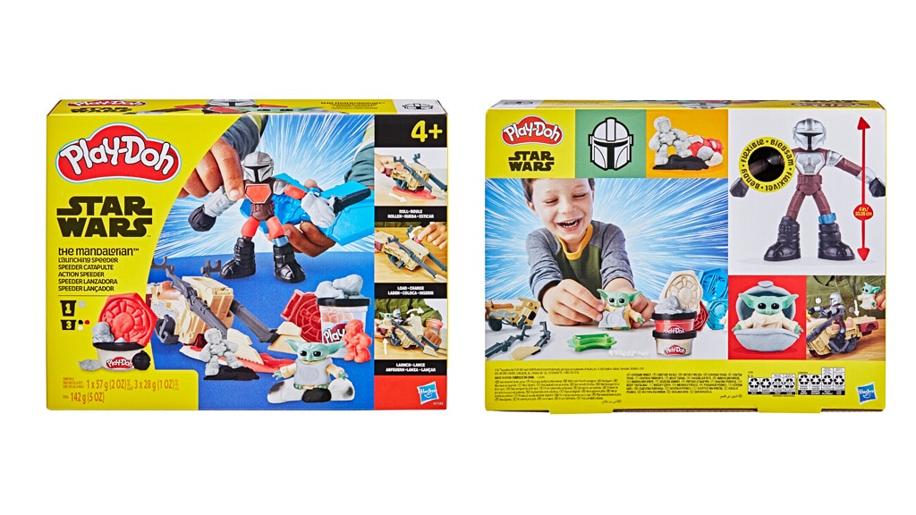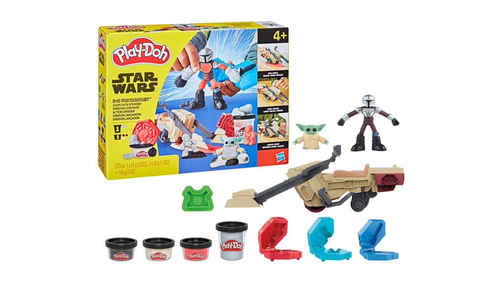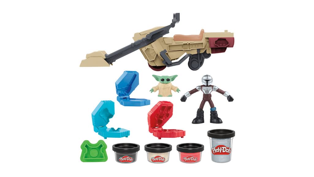 Djeca mogu koristiti priloženi Speeder kako bi prevrnuli Play-Doh plastelin i napravili streljivo, zatim ga mogu napuniti u Speeder i ispaliti (naravno, pod vodstvom Mandalorijanca i Grogua). Vozilo također služi kao alatni set - djeca ga mogu rastaviti i koristiti dijelove za rezanje i oblikovanje Play-Doh plastelina. Set također sadrži kalupe za Mandalorijanski oklop, Groguov oklop, kao i za još jedan lik, kako bi maštovita igra bila još uzbudljivija!