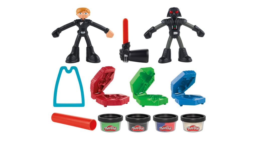 Uz pomoć priloženih kalupa, mališani mogu izraditi Play-Doh plašt za figuru Darth Vadera, stvoriti pojas Lukea Skywalkera, oblikovati Play-Doh svjetlosni mač, pa čak i izraditi vlastiti mekani R2D2 ili mračnog Stormtroopera. Djeca mogu dodati odvojivi crveni svjetlosni mač kao dodatak Darth Vaderu i koristiti rastezljive figure tijekom vlastitih borbenih scena. Njihova kreativnost je ograničena samo maštom dok ponovno stvaraju omiljene scene ili izmišljaju vlastite priče u Star Wars svemiru. Ova igra nije samo zabavna, već razvija i fine motoričke vještine te maštu.