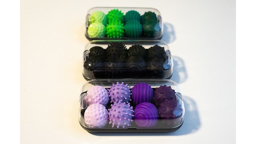 Signets su gotovo potpuno tihi kada ih djeca guraju, privlače i kotrljaju. Silikonska vanjska ljuska je mekana i fleksibilna. Ugodan je osjećaj kotrljati jedan u dlanu ili ih gurati i privlačiti u velikoj hrpi, kao što smo to činili na Toy Fairu. Signets su dostupni u sedam boja: crna, zelena, ljubičasta, plava, tirkizna, crvena i siva. Četiri različite teksture pružaju različite osjećaje koji osiguravaju smirenost i koncentraciju tijekom korištenja.