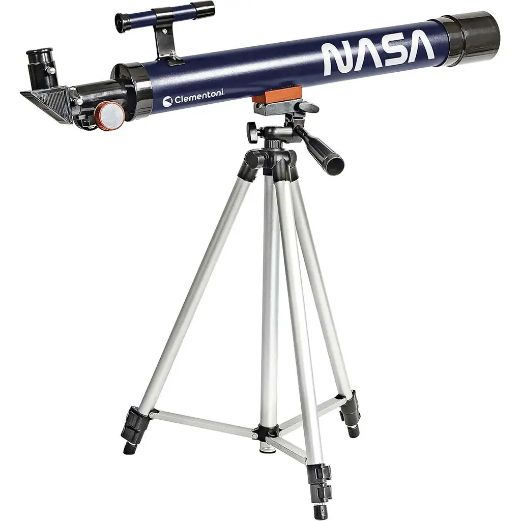 Science & Play: NASA astronomski teleskop savršen je izbor za djecu koja su zainteresirana za svemir i astronomiju. Ovaj optički teleskop omogućuje im da istražuju kratere Mjeseca, zvijezde i udaljena nebeska tijela, dok na zabavan način proširuju svoje znanje o svemiru. Elegantni dizajn s NASA logom pruža poseban doživljaj mladim istraživačima svemira i potiče ih na stvarno istraživanje. Ovaj teleskop može povećati do 300 puta, omogućujući djeci da izravno svojim očima promatraju nebo. Mogućnosti povećanja osiguravaju dvije različite optičke leće, tako da će promatranje uvijek biti oštro i bogato detaljima. Podesivi aluminijski tronožni stalak osigurava stabilnost, omogućujući djeci da udobno i precizno usmjere teleskop prema željenim nebeskim tijelima.