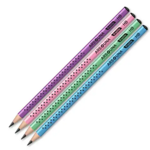 Ove specijalne grafitne olovke, ukrašene uzorkom crne zvijezde, sigurno će osvojiti svačija srca jer nisu samo elegantne, već su i iznimno izdržljive. Grafitne olovke vrhunske kvalitete Ars Una izvrsne su za korištenje u školi, kod kuće ili čak za uredski rad. Trokutasti dizajn osigurava udobno držanje tijekom korištenja. Olovka je izrađena od visokokvalitetnog drva i ispunjena nelomljivim vrhom. Tvrdoća vrha HB je najopćenitiji tip i može se koristiti u sve svrhe.