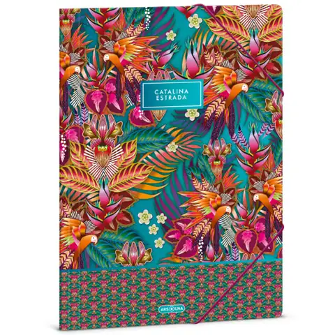 Mapa s uzorkom Catalina Estrada iz kolekcije Guaviare-Blue savršen je izbor za uredsku i kućnu upotrebu. Svojim jedinstvenim stilom i praktičnim dizajnom oduševit će sve ljubitelje prirode i jedinstvenog dizajna. Mapa je izrađena od kartona debljine 350 g koji jamči izvrsnu kvalitetu i dugotrajnost te štiti dokumente i dokumente pohranjene u njoj te ih uvijek možete čuvati na sigurnom. Šareni gumeni remen omogućuje jednostavno i sigurno zatvaranje mape. Na taj način možete sve svoje dokumente držati urednima i spriječiti da se izgube ili razbacaju. Uživajte u kvaliteti debelog kartonskog materijala i sigurnosti koju pruža šarena gumica, dok sa sobom nosite tropsku čaroliju!