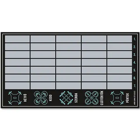 Raspored satova Drone Racer inspiriran na daljinsko upravljanje, odnosno dronovima, pa će se prije svega svidjeti mališanima, a i veličina mu je odabrana tako da udobno stane u većinu držača za olovke. Raspored, izrađen od tvrdog papira, savršen je za podsjećanje na nadolazeću nastavu u vašem držaču za olovke. Svaki dan se može snimiti maksimalno sedam različitih razreda, ali budući da je raspored dvostran, na njemu se mogu pratiti i A i B tjedan.