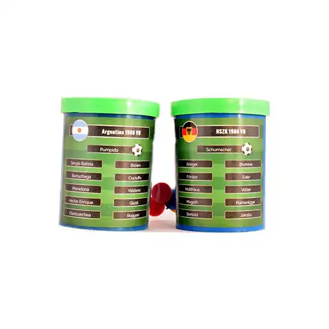 Ovaj nogometni set vodi vas malo u prošlost, u finale Svjetskog prvenstva 1986., gdje se argentinska momčad suočila s njemačkom reprezentacijom, a na kraju utakmice veliki Maradona uspio je podići zlatni pehar. Igru mogu igrati 2-4 osobe, a cilj igrice je odigrati utakmicu svjetskog prvenstva s igračima na dugmetu. Set uključuje 11 najboljih igrača dviju nogometnih momčadi, a uključuje i 4 nogometne lopte, tako da sve što trebate su golovi. Možete gledati tadašnju nogometnu utakmicu i ponavljati bitne situacije, golove ili gledati pravu utakmicu. Uz sve ovo, također možete uživati ​​u daru, jer smo uključili 22 naljepnice igrača, momčadi iz 2017. Feyenoord Rotterdam i Glasgow Rangers.