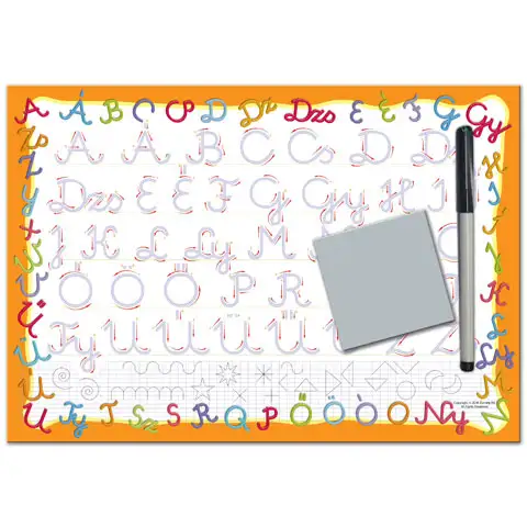 Za malu djecu koja su blizu polaska u školu ili se tek počinju upoznavati sa slovima, ova je ploča za crtanje izvrstan izbor za njih. Sjajna, ploča dimenzija je 33x23cm, što je otprilike iste veličine kao list A4, a na površini ima velika slova mađarskog ABC-a. Svako slovo pomaže nacrtati slabo privučenim i sitnim strelicama koje pokazuju pravi smjer olovke. U kompletu ćete, naravno, pronaći prikladan flomaster i spužvicu za brisanje.