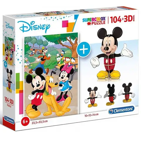 Disney: Mickey Mouse puzzle 104kom + 3D Mickey - ClementoniDisney: Mickey Mouse puzzle 104kom + 3D Mickey - Clementoni