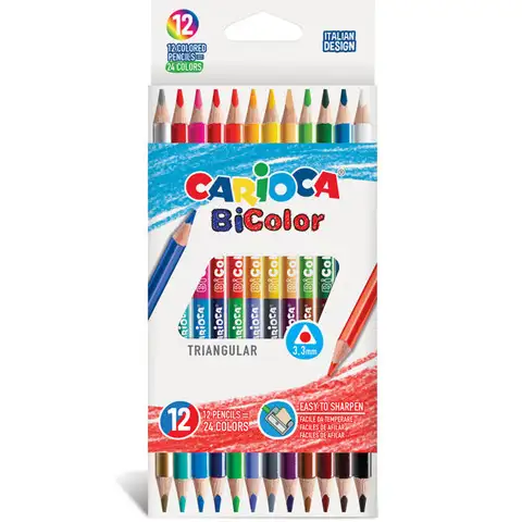 Ove drvene bojice su posebne po tome što imaju dva vrha. Carioca drvene bojice su izrađene vrlo kvalitetno stoga će vam biti zadovoljstvo s njima bojati. Uz to, vještine koje su stečene bojanjem omogućava im lakše baratanje sitnim predmetima. Sa svakim pobojanim poljem povećava se i dječja koncentracija. Kroz polja koja su zadana za bojanje dijete može dobiti neki osjećaj za granice, ali i naučiti mnogo o linijama, oblicima i uzorcima. Drvene bojice se vrlo jednostavno šilje.