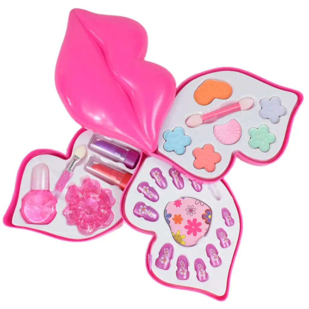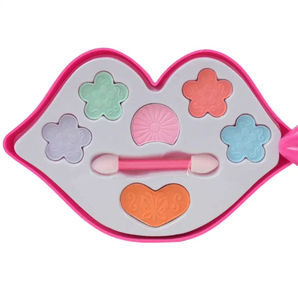 Predstavljen u prekrasnoj ružičastoj posudici u obliku usta, ovaj zadivljujući pribor za šminkanje sigurno će biti veliki hit kod djevojčica. Sjenila i sjajila za usne u njemu rado će koristiti kako bi se učinile još ljepšima i posebnijima. Ovaj set šminke nije samo utjelovljenje blistavog oblika, već ima i praktičan dizajn. Razine spremišta mogu se jednostavno sklopiti jedna ispod druge, tako da su svi elementi raspoređeni na uredan i transparentan način. Sjenila, sjajila za usne i sve ostale sitnice bit će vam lako dostupne tijekom šminkanja. Garnituru karakteriziraju mladenačke, vesele boje koje zaista zrače srećom i kreativnošću. Djevojčice će biti oduševljene otkrivanjem živih boja koje im omogućuju da izraze svoj individualni stil i jedinstvenu šminku.
