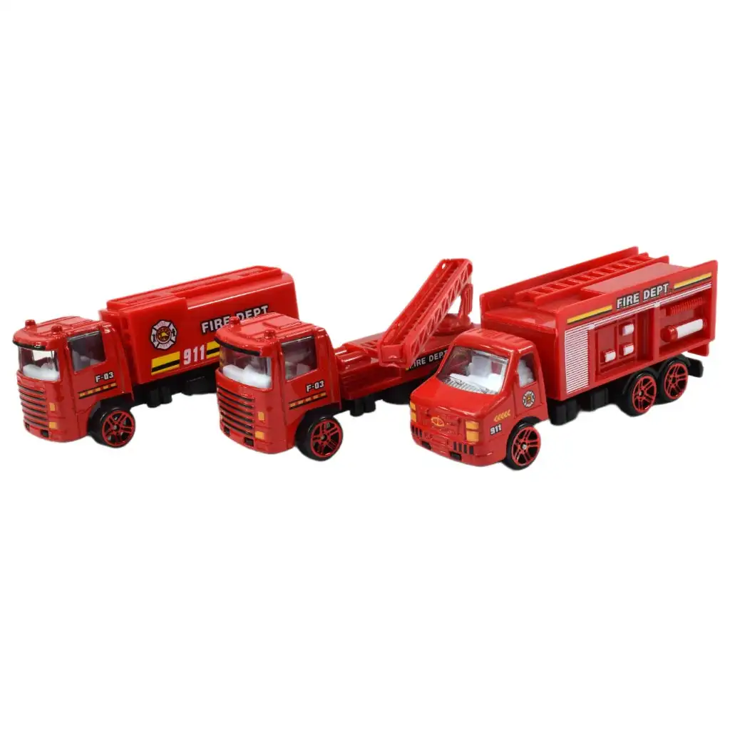 Materijal seta je visokokvalitetna plastika koja osigurava izdržljivost i dug vijek trajanja. Omjer 1:64 omogućuje vatrogasnim vozilima i priboru da budu kompatibilni s većinom autocesta i pribora za igračke.