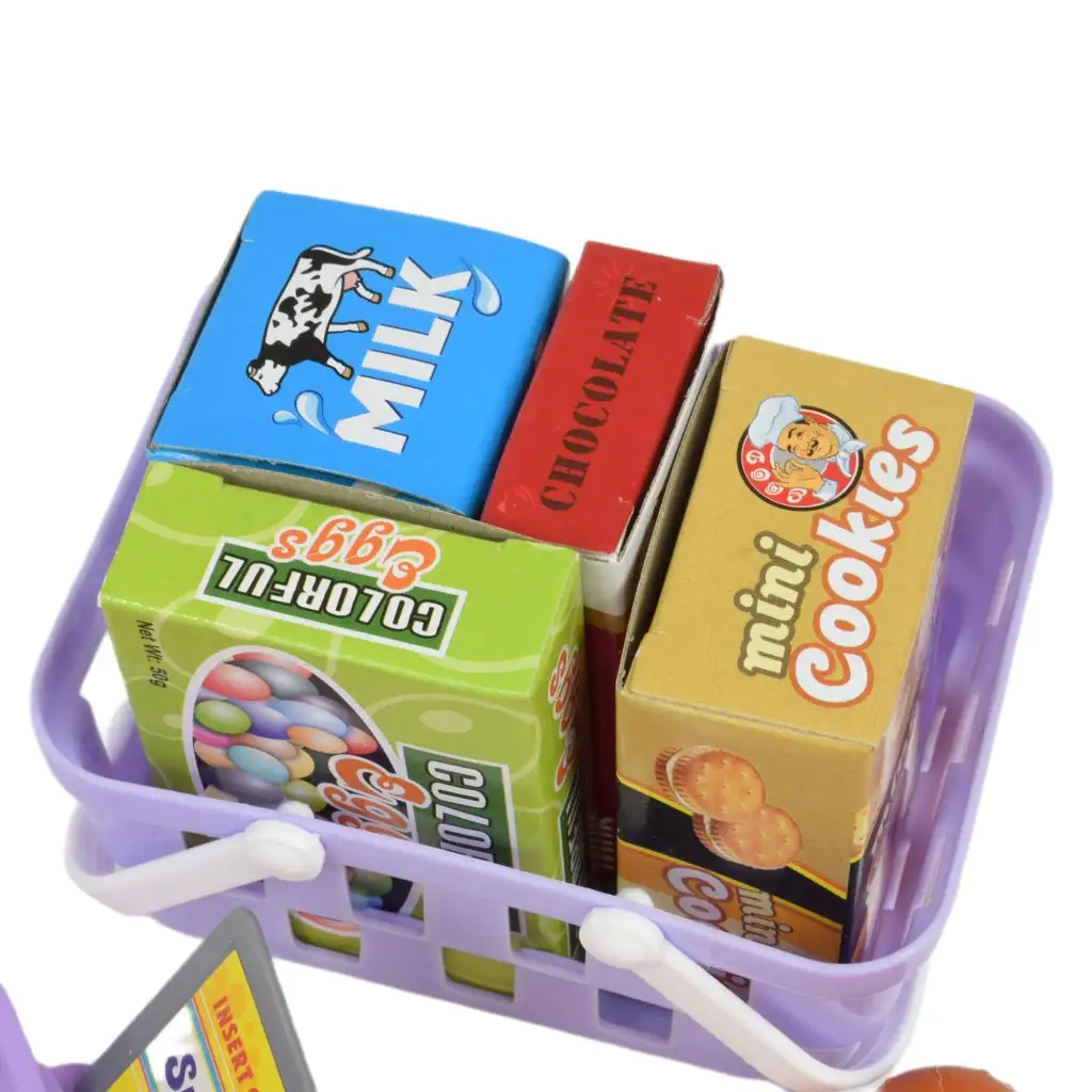 Set također uključuje igraći novac i košaricu za kupovinu, što igru ​​čini još realističnijom. Djeca rado stavljaju raznu robu u košaricu, a zatim na blagajni izračunavaju i plaćaju iznos svoje kupovine.