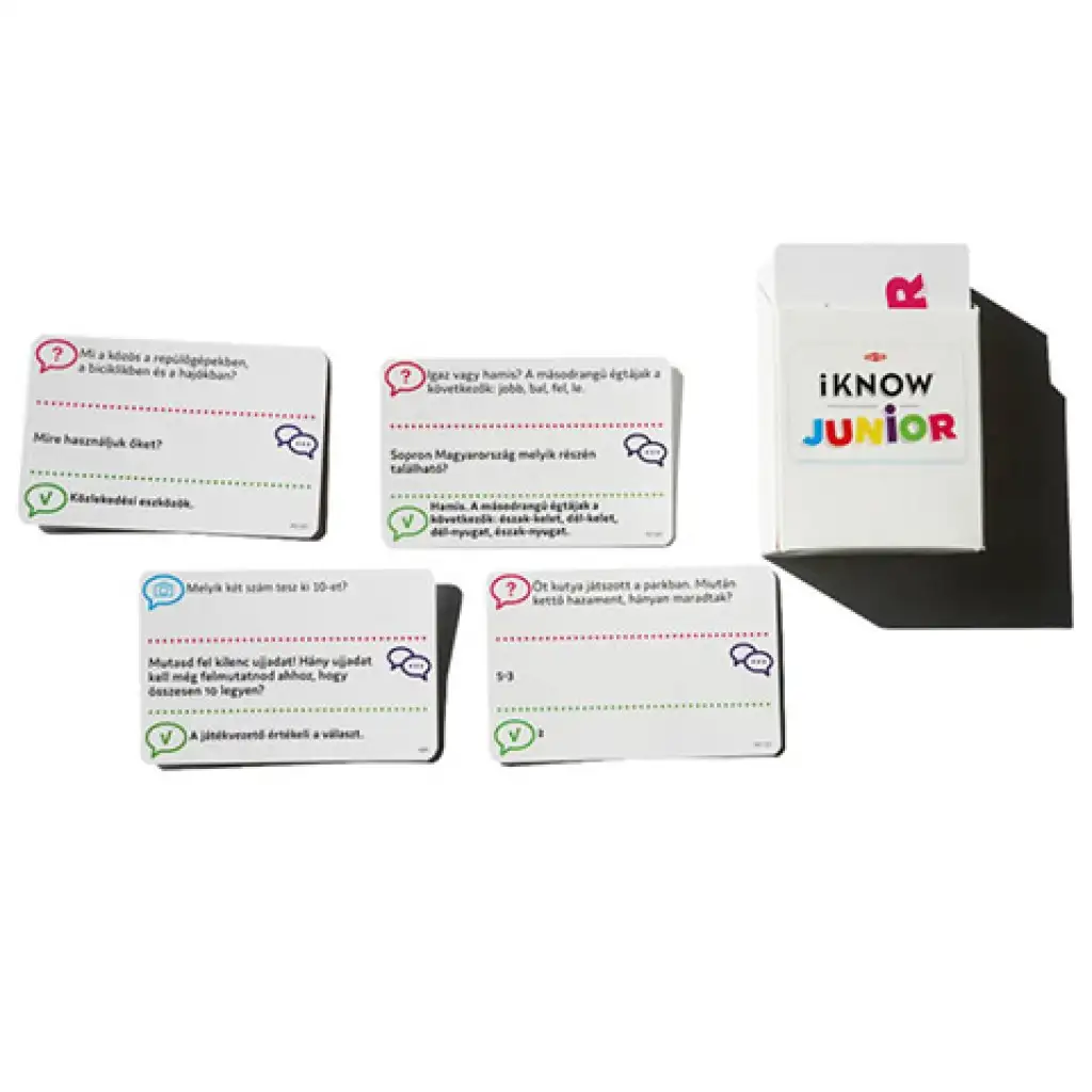 Društvena igra iKNOW Junior nudi djeci izvrsnu priliku da kroz zabavu nauče mnogo zanimljivih stvari. Bilo da se radi o crtanju, pitanjima s višestrukim izborom ili igrama oblikovanja slova, zabava je zajamčena za igrače. Osim toga, iKNOW Junior je razvijen u suradnji s pedagoškim stručnjacima koji imaju dugogodišnje iskustvo u radu s djecom različitih dobnih skupina. Igranje iKNOW Juniora također pruža odraslima sjajnu priliku da potaknu svoju djecu na učenje, jer se ova igra fokusira na ono što igrači mogu učiniti, a ne na ono što ne mogu. Igrači trebaju odabrati voditelja igre koji će upravljati igrom i zadavati igračima tradicionalne ili slikovne zadatke. Djecu očekuje mnogo različitih zadataka, ali svi su bez sumnje uzbudljivi i pružaju priliku za lagano učenje.