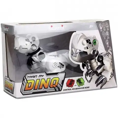 Ovako odgajate svog dinosaura! interaktivno primitivno stvorenje na daljinsko upravljanje koje djeca mogu podučavati tijekom igre. Robot dino može se koristiti u dva načina. U načinu rada Wild, dinosaur se kreće i reagira nasumično ispuštajući zabavne zvukove. U isto vrijeme, Train mod vam omogućuje da s njim komunicirate na još jedan način: dodirom njegove glave, dino će pratiti vaše pokrete ruku. Ugrađeni inteligentni senzori reagiraju na daljinski upravljač i dino može izbjeći prepreke ispred sebe. Mali dinosaur kotrlja se na kotačima, oči mu svijetle. Promjenom načina rada mijenja se i boja očiju. Kameni izgled daljinskog upravljača također donosi mališanima svijet primitivnih bića.