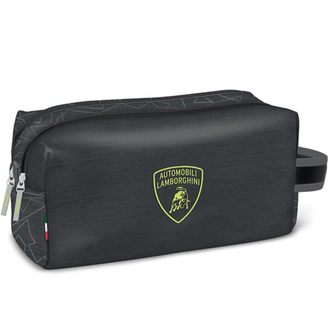 Logo talijanske tvornice automobila Lamborghini pojavljuje se u zelenoj boji na tamno sivoj osnovnoj boji, savršeno simbolizirajući brzinu i eleganciju. Neseser je također idealan za djecu i odrasle, za spremanje svojih stvari, bilo da se radi o školskim higijenskim potrepštinama ili putnim potrepštinama. Dva pretinca sa patentnim zatvaračem mogu odvojeno pohraniti stvari kako bi bili sigurni za putovanje.