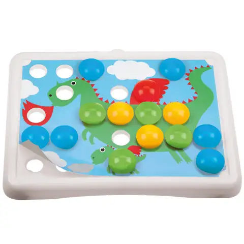Čak i najmanji mogu se upoznati sa svojom kreativnošću koju razvijaju ovi šiljci i koji dolaze u različitim bojama. U ploču možete postaviti sedam različitih uzoraka baze koje se mogu dodati šiljcima prema njihovim bojama. Uzbudljiva igra zabavna je za malu djecu jer se mogu upoznati sa različitim bojama. Koja je vaša omiljena slika? Zahvaljujući velikoj veličini šiljaka igra je potpuni sigurna za djecu!