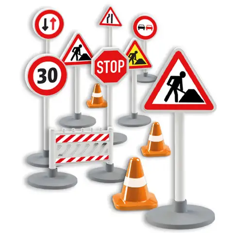 Ako već imate puno vozila u svojoj kolekciji, vrijeme je da nabavite neke prometne znakove za kontrolu prometa oko zgrade. U ovom fantastičnom setu se nalaze svi potrebni prometni znakovi, od upozorenja, do radova i STOP znaka. Certifikat Lena Spiel Gut jamstvo je visokokvalitetnih sirovina i robusnog dizajna, kao i odličnu zabavu za djecu.