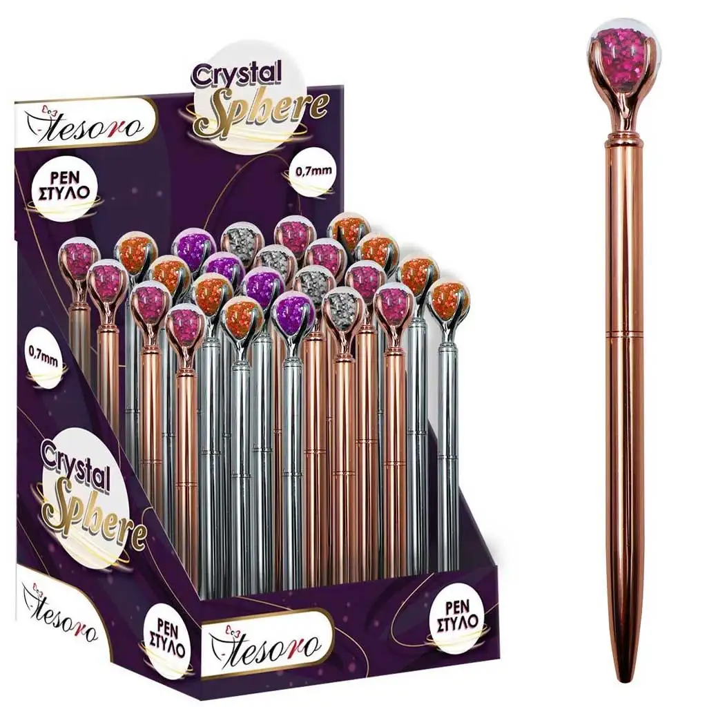 Luna: Tesoro kemijska olovka s kristalnim krajem savršena je kombinacija stila i elegancije. Olovka daje ekskluzivan izgled zahvaljujući elegantnom kristalnom kraju. Dostupan je u različitim verzijama, tako da svatko može pronaći onu pravu za svoj stil. Olovka je izrađena od kvalitetnih materijala i pruža ugodan zahvat. Pakiranje se sastoji od jednog komada, što ga čini idealnim za poklon ili za vlastitu upotrebu.