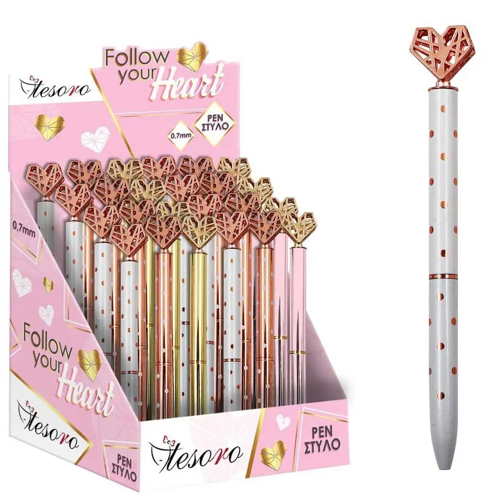 Kemijska olovka Luna: Tesoro sa vrhom u obliku srca je romantična i šarmantna olovka savršena za zaljubljene i osobe romantičnog duha. Olovka ima kraj u obliku srca koji joj daje poseban i lijep izgled. Dostupan je u različitim verzijama tako da svatko može pronaći onu pravu za svoj stil. Olovka je izrađena od kvalitetnih materijala i pruža ugodan zahvat. Pakiranje se sastoji od jednog komada, što ga čini idealnim za poklon ili za vlastitu upotrebu.