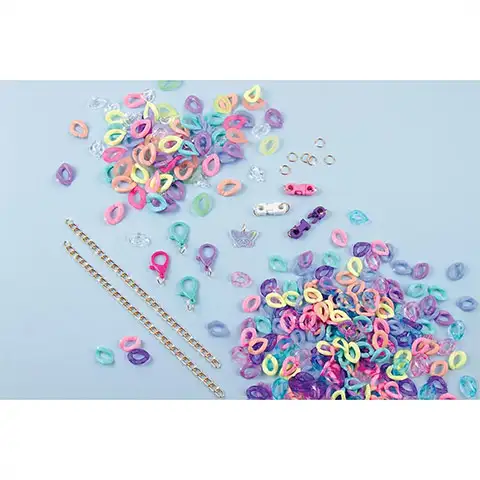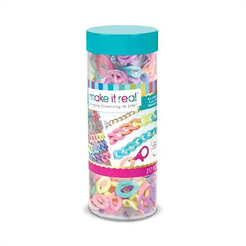 Igračke Make It Real jedna su od omiljenih serija djevojčica u kojoj pronalaze perlice i druge dodatke kojima mogu izrađivati ​​i ukrašavati različit nakit. Ovaj set za izradu nakita pomaže u izradi lančića jer se elementi lako spajaju. Djeca bi trebala iskoristiti svoju kreativnost kako bi izradila jedinstvene, posebne narukvice, ogrlice ili čak pojaseve. Set sadrži 300 prozirnih plastičnih lančića pastelnih boja, koji se pojavljuju u 2 veličine. Osim ovih, paket uključuje i nekoliko dodataka kojima također možete ukrasiti svoje kreacije.