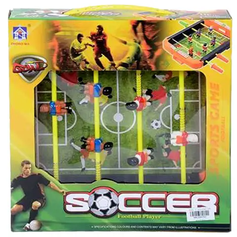 Sa jednim mini stolnim nogometo imate priliku iznenaditi svoje mališane. Smisao igre je ubaciti loptu u gol kružno pomičući šipke na kojima su figure igrača okretanjem ručki koje se nalaze izvan rubova stola. Ovaj mini stolni nogomet je izrađen vrlo kvalitetno i detaljno, stoga vjerujemo da će djeci dugo biti na raspolaganju.
