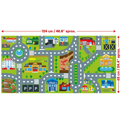Ovaj sjajni tepih za igru ​​zasigurno će se svidjeti maloj djeci, jer će više od metra dugačak i šest centimetara široka prostirka sa uzorkom grada biti izvrstan način da privučete dječju pozornost. Set uključuje dvadeset i jedan građevinski element ukrašen bojama i uzorcima, kao i tri mala automobila koji će očarati djecu svjetlima i zvukovima. Građevni elementi Molto Bloks izrađeni su od visokokvalitetnih materijala i zahvaljujući svom većem dizajnu, idealni su za najmlađe, jer također dobro drže male ruke. Uz pomoć elemenata razvit će se dječje kretanje jer će se kocke morati sastaviti, što također zahtijeva spretnost i koordinaciju očiju i ruke.
