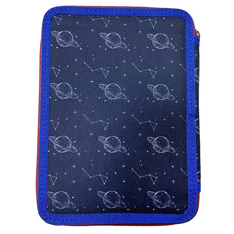 Budite prvi koji će posjedovati ovaj nevjerojatan držač za olovke s NASA-inim grbom i svemirskim brodom na putu prema planetima. Ovaj držač za olovke pruža elegantno i praktično rješenje za organiziranje i pohranjivanje školskog pribora. Dimenzije držača za olovke su 15x21x5 cm, što je savršena veličina za spremanje kemijskih, olovaka, gumica, šiljila i ostalog pribora. Ima dva odjeljka koji djeci pomažu organizirati različite papirnate potrepštine, što olakšava pronalaženje onoga što im treba. Pernica je opremljena svime što je učeniku potrebno za polazak u školu. Držač za olovke izrađen je od poliestera, koji je čvrst i izdržljiv materijal koji osigurava da će držač za olovke moći izdržati svakodnevne izazove školskog života. Izdržljivi patentni zatvarači dodatno su jamstvo dugotrajnosti proizvoda i sigurnosti pribora koji djeca čuvaju.