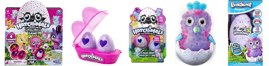 Amikor a Spin Master rájött arra, hogy valami hatalmasat alkottak, új termékeket szerettek volna a piacra dobni, így találhatunk a játékboltok polcain Hatchimals meglepetés csomagokat, amiben ugyancsak kis tojásokban gyűjthető figurákat találhatunk, hatalmas választékban. Összesen 13 különböző család létezik, melyek eltérőek lehetnek színben, formában vagy állatfajban és így 70 féle figurát gyűjthetünk össze. Ezekhez különböző kiegészítőket is be tudunk szerezni, mint tojástartó, fészek, vagy épp egy hatalmas tojás, amit be lehet rendezni, és otthont ad a kis figuráknak.