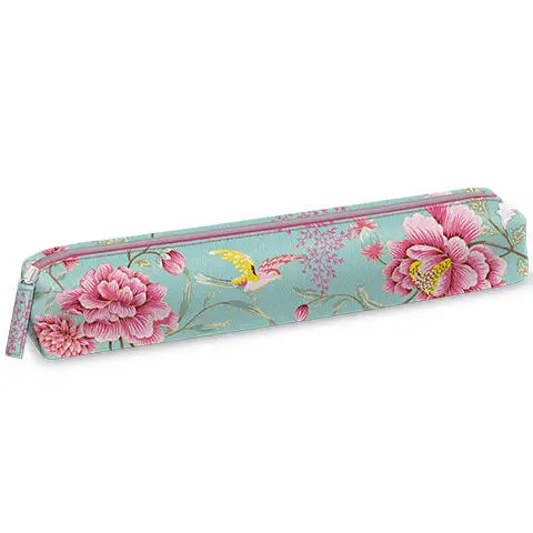 Ova orijentalno-tirkizna pernica dovoljno je jedinstven u svom dizajnu da se dopadne djevojkama u tren oka. Dizajn dugačak samo četiri centimetra daje mu gracioznost, ali u isto vrijeme udobno pristaje potrebnoj tiskanici, pa je moderan izgled spojen sa korisnošću. Njegov jedan veliki pretinac može se otvoriti patentnim zatvaračem i preklopima prema dolje, tako da zahvaljujući svojoj dužini od dvadeset centimetara udobno stane uz manje ravnalo, šestar i pribor za pisanje za svakodnevno učenje.
