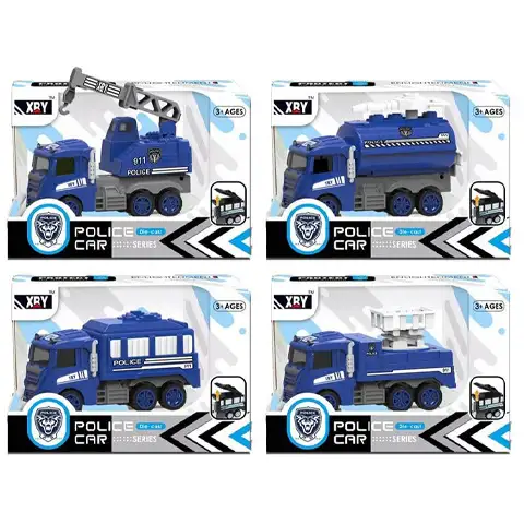 Sa ovim posebnim policijskim kamionima možete dodati carstvo igračaka vašeg djeteta. Veliki je san malim dječacima da se jednog dana mogu okušati u policiji i sjesti za volan tako masivnog kamiona. Kamion je detaljno opremljen i opremljen ogromnim kotačima kako bi se lako nosio sa najtežim terenima.