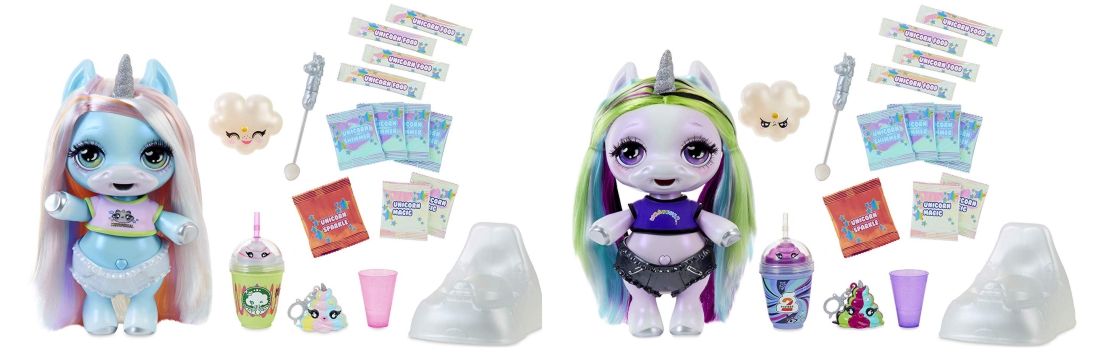 További tartozékokként találkozhatsz még keverőkanállal, kis pohárkával, fedeles hordozható pohárral, 1db meglepetés unikornis kaki kulcstartó figurával és egy különleges pihe-puha felhőcskével. A Poopsie Slime Surprise játékszettnek utántöltő csomagja is elérhető, amelynek segítségével tovább élvezheted kedvenc egyszarvúd társaságát és tovább gyárthatod a csodálatos színekben pompázó unikornis kakikat. A 6db-os meglepetés csomagban biztosan találkozhatsz 1db unikornis étellel, 1db unicorn magic varázsporral, 1db pohárral és 1db meglepetés kucstartó figurával.