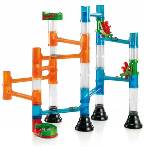 Sa šarenim kuglicama i atraktivnom stazom zabava je zajamčena! Elementi staze su prozirni pa ćeš moći promatrati kuglice kako se kotrljaju prema podnožju. Staza se sastoji od 45 dijelova u raznim bojama koje trebaš složiti. Dva mlinska koluta čine je još zabavnijom. Kad je staza gotova, igra može započeti. Pozovi i prijatelje i organiziraj takmičenje da se vidi čija će kuglica stići prva na cilj!