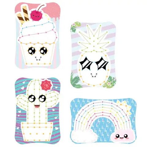 Ova sjajna kreativna igra zajamčeno će zabaviti trenutke uz vaše neobične slike koje ne bi trebale biti obojane flomasterima i olovkama, već sa devet pređa u boji dostupnih u tu svrhu. Među setovima Play Creativo String Art, i mladi i stari naći će pravi izazov za njih. Postavljajući odabranu sliku na ploču, prvo treba staviti obojene šiljke, a zatim može doći obojena pređa koja gotovo može obojati lik tako što će ga razvući između obojenih šiljaka uz pomoć prikladne vodilice.
