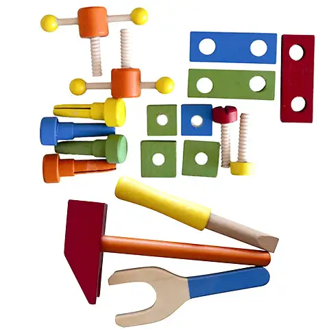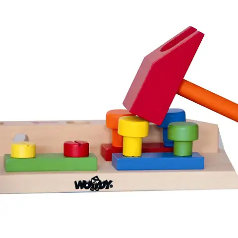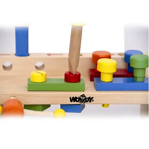 Drvene igračke već su generacijama omiljene igračke za djecu i prvi izbor roditelja koji žele da se njihova djeca igraju s kvalitetnim igračkama od prirodnih materijala. S drvenim kockicama djeca mogu postati mali graditelji, s drvenim slagalicama naučit će riješiti jednostavne probleme, a s drvenim puzzlama će se dobro zabaviti. Drvene igračke su najčešće didaktičke igračke koje su već godinama najtraženije igračke za djecu jer uz zabavu pružaju i pravilan razvoj kroz igru. Različite drvene didaktičke igračke utječu na razvoj fine motorike, matematike i logike. Različite boje pretvaraju didaktičke igračke u igre spretnosti, a kako su istovremeno i prostorne igre utjecat će na kvalitetnije snalaženje u prostoru kod djece. Drvene igračke su izdržljive i boja na vodenoj bazi ne sadrži štetne sastojke. Otvori svoju radionicu i izrađuj namještaj ili popravljaj stari s ovim odličnim radnim stolom i alatima od drveta izvrsne Woodyland kvalitete!